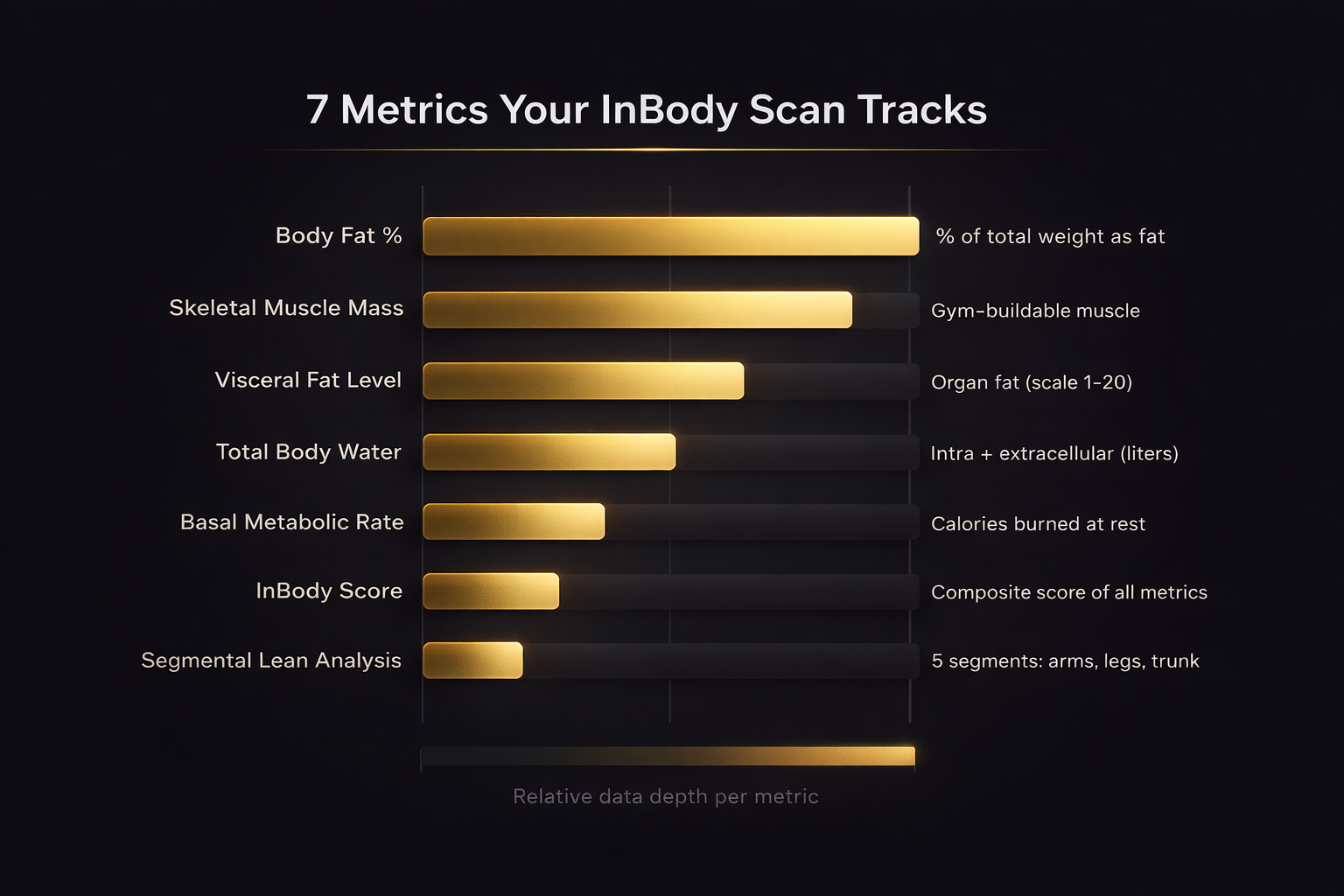 The InBody result sheet tracks seven distinct metrics, and the machine can store up to 8 historical scans on a single comparison sheet, so you can see your progress at a glance (InBody USA, 2026). That's more actionable data than any consumer scale can produce, and it arrives in under a minute.
