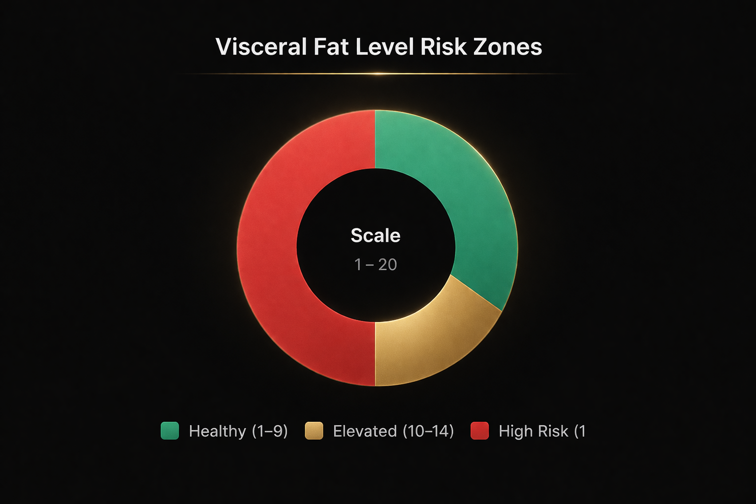 Visceral Fat LevelZoneWhat It Means1–9HealthyNo action needed10–14ElevatedAddress through nutrition and cardio15–20High RiskConsult trainer and physician