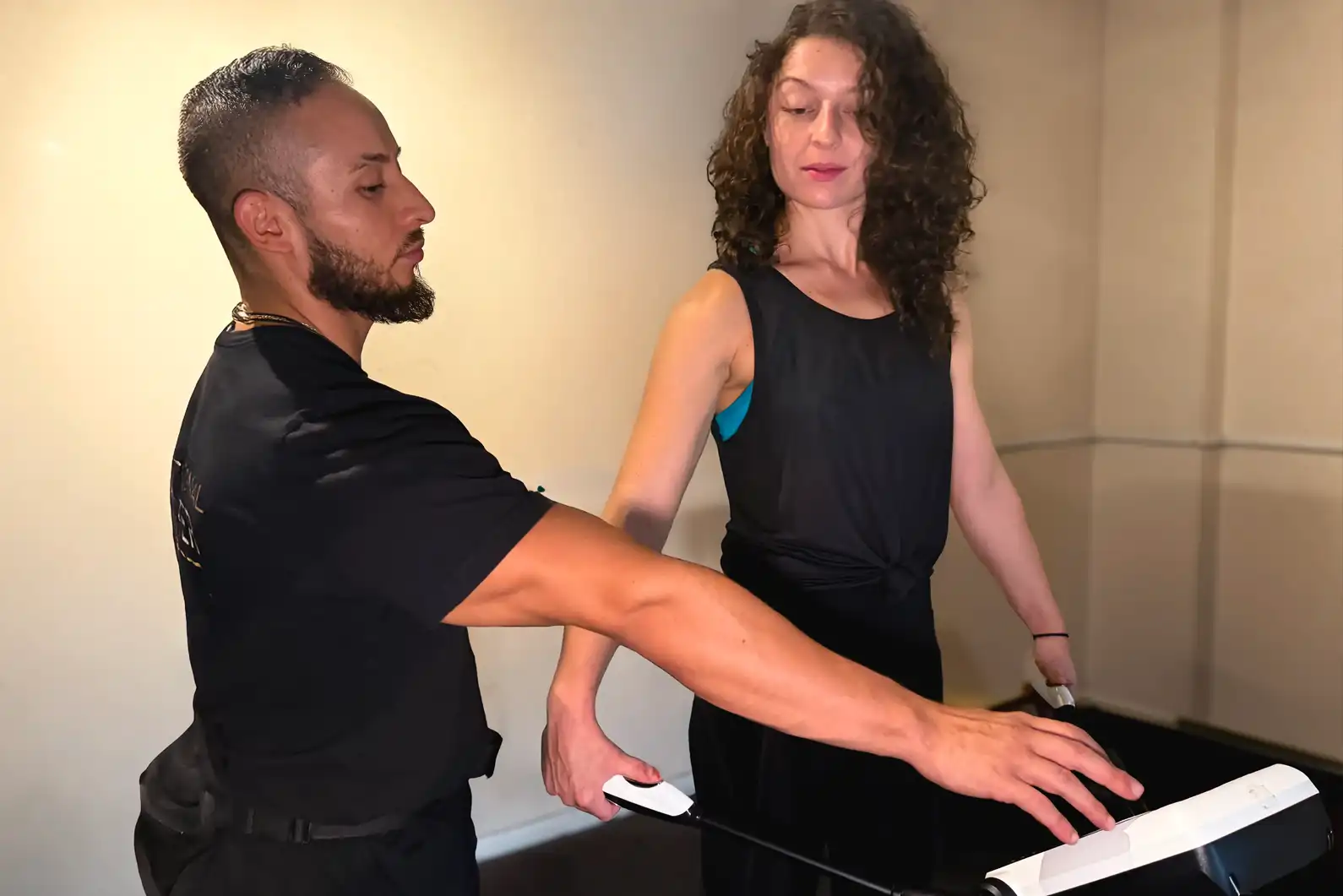 Nothing at all. The electrical current used in BIA is imperceptible to the human body. You stand on the footpads, hold the hand grips, stay still for 45 to 60 seconds, and you're done. There's no sensation, no radiation, and no physical contact with a technician. It's one of the most passive fitness tests available.